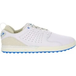 The Adidas FlopShot spikeless golf shoe offers on and off course versatility. It features a TPU rubber outsole with exceptional traction. The boost EVA midsole offers a cushioned ride and the premium leather upper provides comfort and water protection. A 1 year waterproof warranty is included.