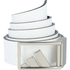 The Adidas Trophy Tour Belt features a brushed silver metal buckle with raised 3 stripes, reversible white and color option, and can be cut-to-size for supreme comfort