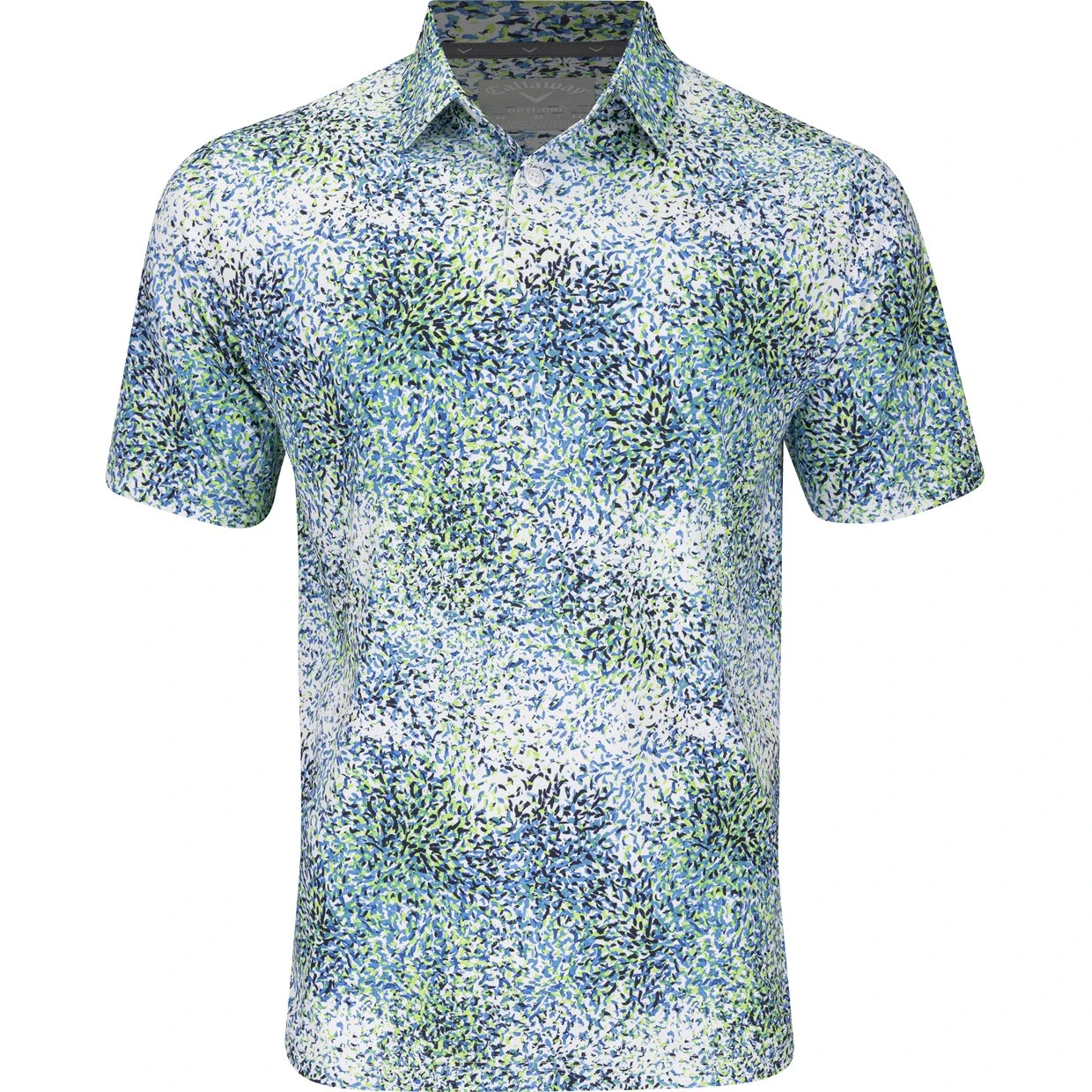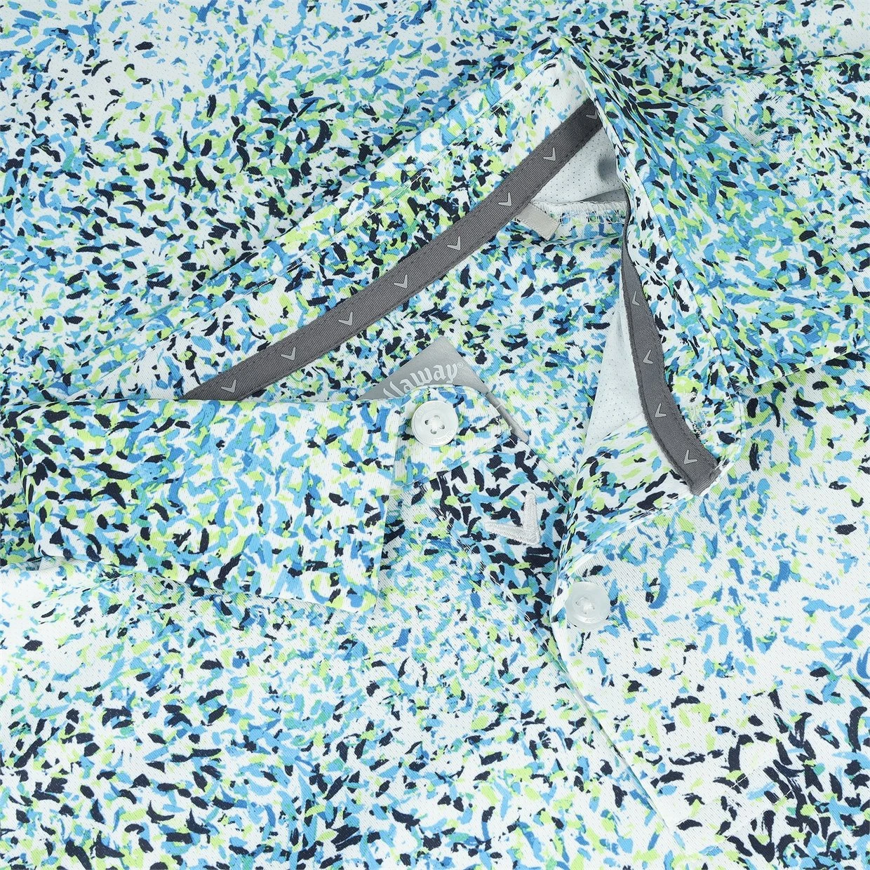 The Callaway All-Over Abstract Artisan Print polo offers fashion and performance. Design details include an all over printed finish, an embroidered chevron on the inside placket, and a Tour logo heat seal at the sleeve. In addition, the polo offers a SwingTech design that enhances movement across the chest and back area for a better swing. Fabric benefits include stretch for extreme comfort and freedom of movement, durability for machine washing, and ventilation and opti dri to keep the skin free from sweat build up