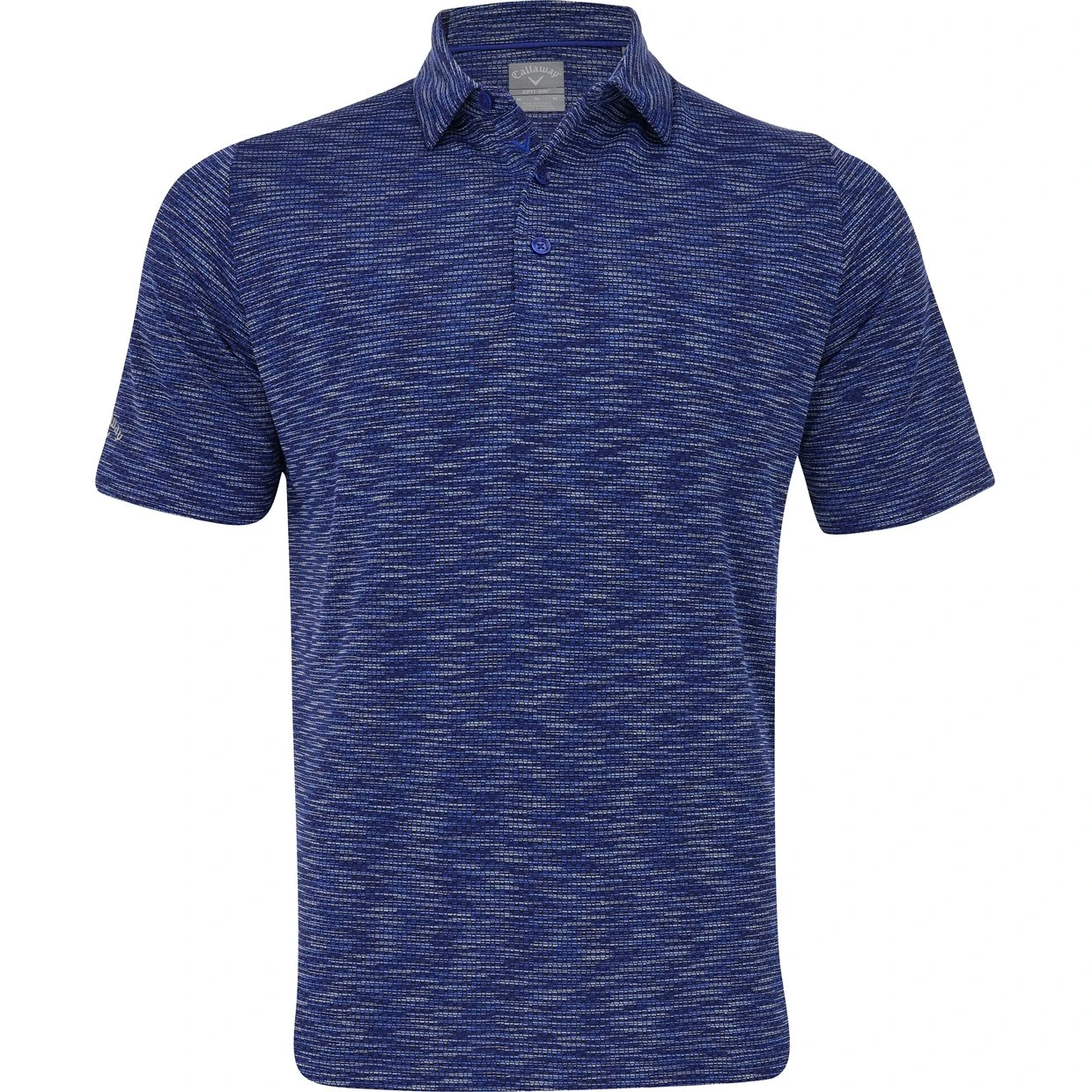 The Callaway Yarn-Dyed Space Dye Chev Jacquard polo features a tour logo heat seal on the right sleeve, embroidered chevron on the inside placket, and Callaway’s opti-dri, swing tech, easy care, and stretch technologies to create a supreme style, comfort, and feel.