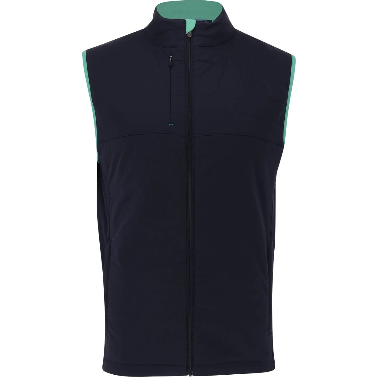 The FootJoy Insulated Full Zip Vest provides comfort, made with the avid golfer in mind. The vest features primaloft insulation for warmth and a water repellent finish for rain protection. It is equipped with pockets, so feel free to bring along your accessories as needed.