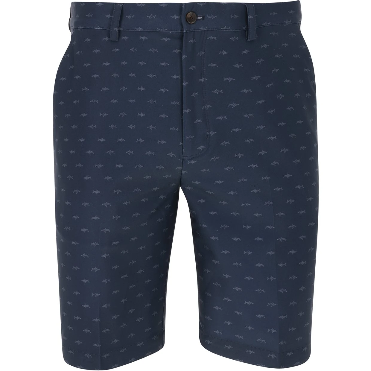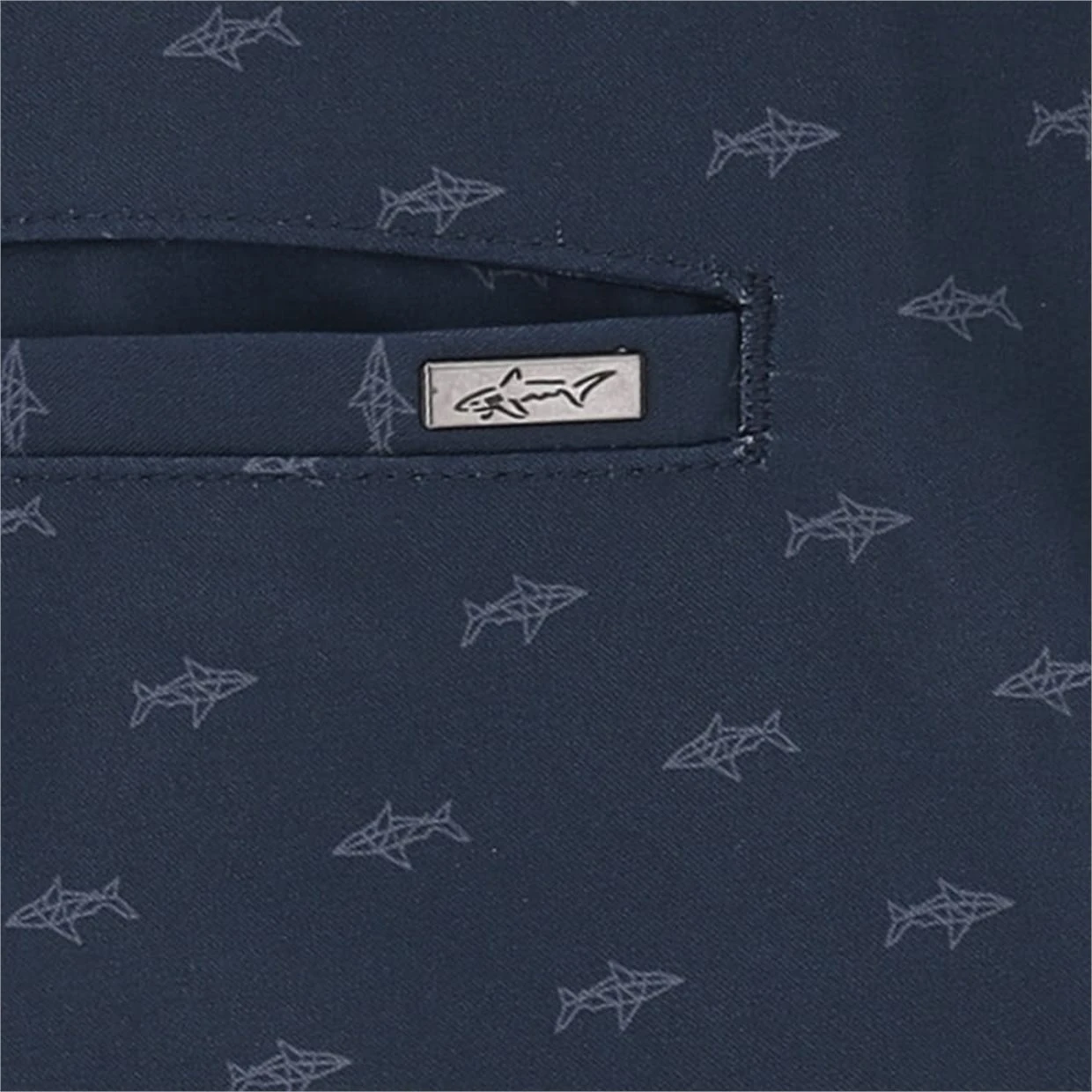Greg Norman’s ML75 MicroLux Hybrid Shark Print Shorts offers comfort with stretch woven fabric as well as freedom of movement. Additional fabric benefits include quick drying properties, scotchgard technology, UV protection, and water resistance. The shorts are equipped with pockets for daily essentials. The pockets feature mesh construction for lighter weight and breathability. In addition, the shark foulard print adds a fashionable touch and the stretch shirt gripper at the waist keeps shirt tails tucked in nice and neatly.