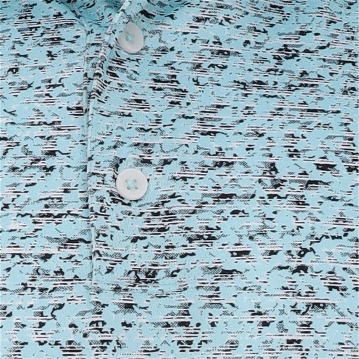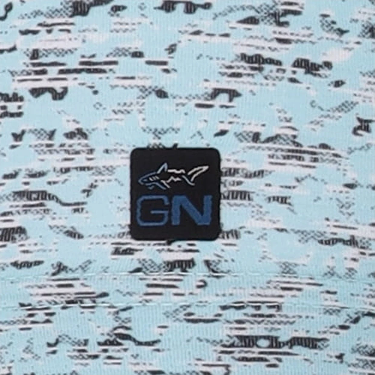 The Tropical Wave ML75 Polo features a tailored collar, Reef Camo print, and GN collection logo on the right sleeve