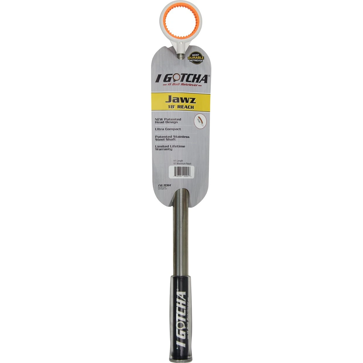 The super compact JAWZ golf ball retriever is made with a durable stainless steel shaft with co-molded rubberized that’s easy to grip. There are no moving parts, just a singled piece head that easily holds the ball in place. It can collapse to 21″ for easy storage.