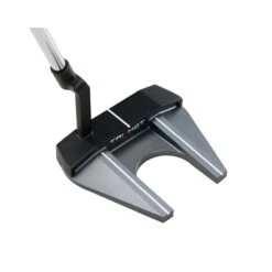 The Tri-Hot 5K Seven CH is a mallet with a crank hosel, suitable for strokes with moderate arc and face rotation. Tri-Hot 5K is built to improve performance by reducing the amount of side spin on off-center hits. Odyssey achieves this through a multi-material design using stainless steel and tungsten in the front and lightweight milled aluminum in the rear. This technique moves the center of gravity forward while increasing inertia. This keeps putts closer to the original line, with tighter dispersion, and a greater chance to go in on less-than-perfect strikes.