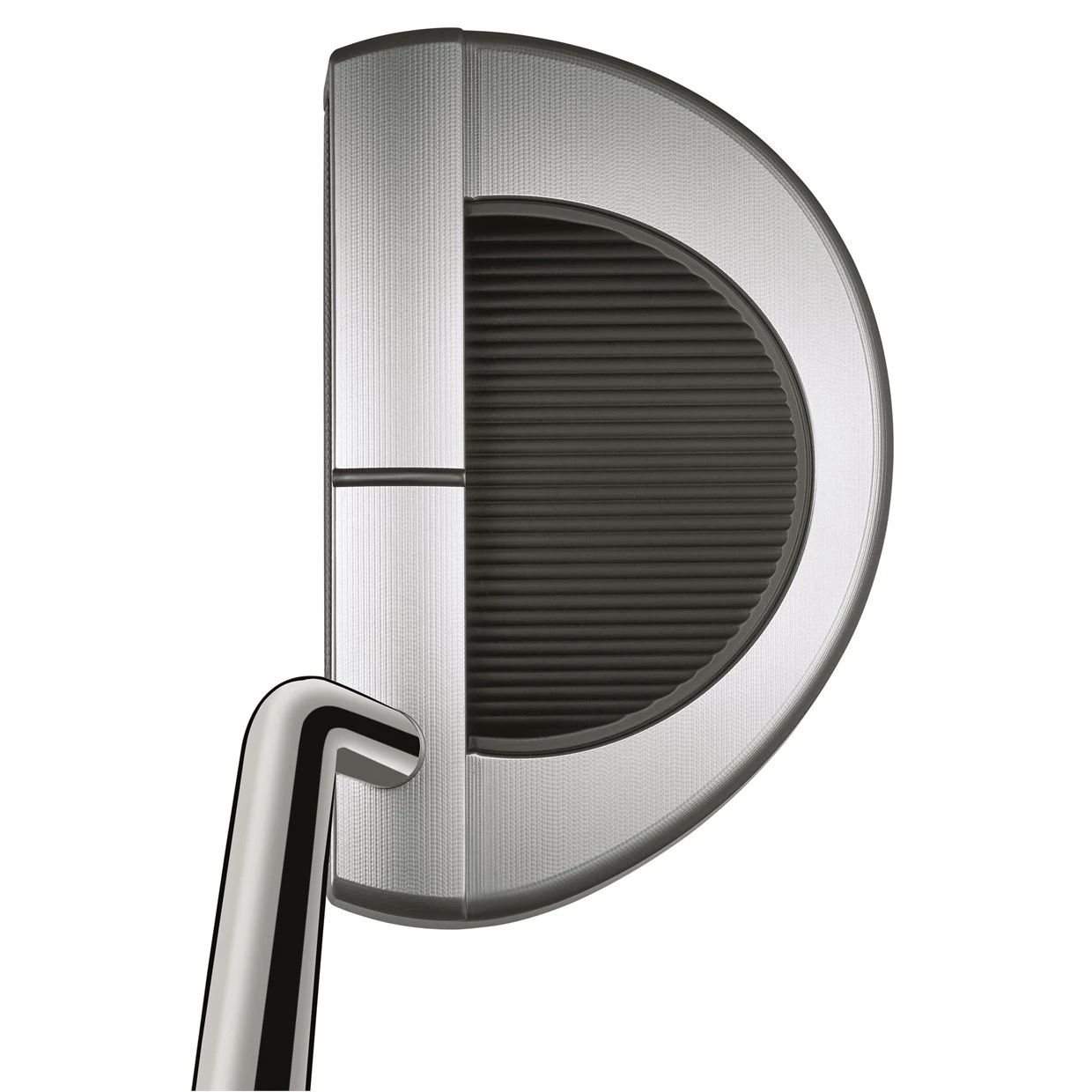 The new Titleist Scotty Cameron Futura putter family melds the best design characteristics of the previous generations to bring you a lineup of tour-proven shapes and configurations with enhanced stability and forgiveness, improved alignment features, and responsive feel and feedback. The Futura putters feature multi-material technology for enhanced High-MOI performance and to increase stability and forgiveness. The vibration dampening system produces soft but responsive feel and feedback while the heel-and-toe weighting removable weights are perfectly matched to shaft length to ensuring consistent balance, feel and forgiveness at any length. The Futura 5CB putter is a “cavity back” mid-mallet with multi-material face-sole technology and a black aircraft aluminum flange plate.