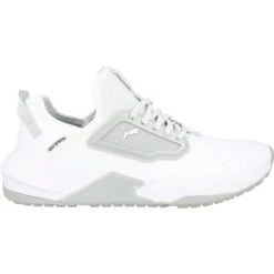 Puma’s GS One features a spikeless outsole with carbon rubber and radial lugs, offering durability and versatile traction on or off the golf course. The outer is equipped with TPU shank wraps that extend to the lateral sidewall, providing extra torsional stability. A TPU saddle is integrated with the midsole on the medial side, allowing the saddle to secure your foot. Comfort for your feet is offered by the SoftFoam sockliner that is equipped with two unique layers of cushioning. Your feet will stay dry with seam sealed construction and welded on TPU layers. A 1 year waterproof warranty is included.