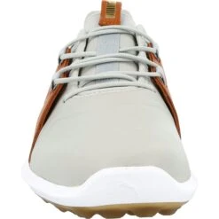 Puma’s Ignite Fasten8 Crafted spikeless golf shoe offers step in comfort, durability, support, stability, and excellent gripping power. The shoe features a leather upper that is waterproof and comes with a 1 year waterproof warranty. The upper is constructed with a Fasten8 PWRStrap Fit System, featuring webbing straps integrated with the lacing system that provide a secure fit. The upper is also constructed with a PWRFrame and PWRCage, offering support and stability throughout your swing. The Ignite Foam midsole provides energy return, responsive comfort and stable cushioning. The midsole is finished with SoleShield, a Micro-thin TPU film that provides added durability and makes cleaning off dirt and debris a breeze. The outsole is equipped with organically altered directional lugs that are placed in proper zones for exceptional gripping power.