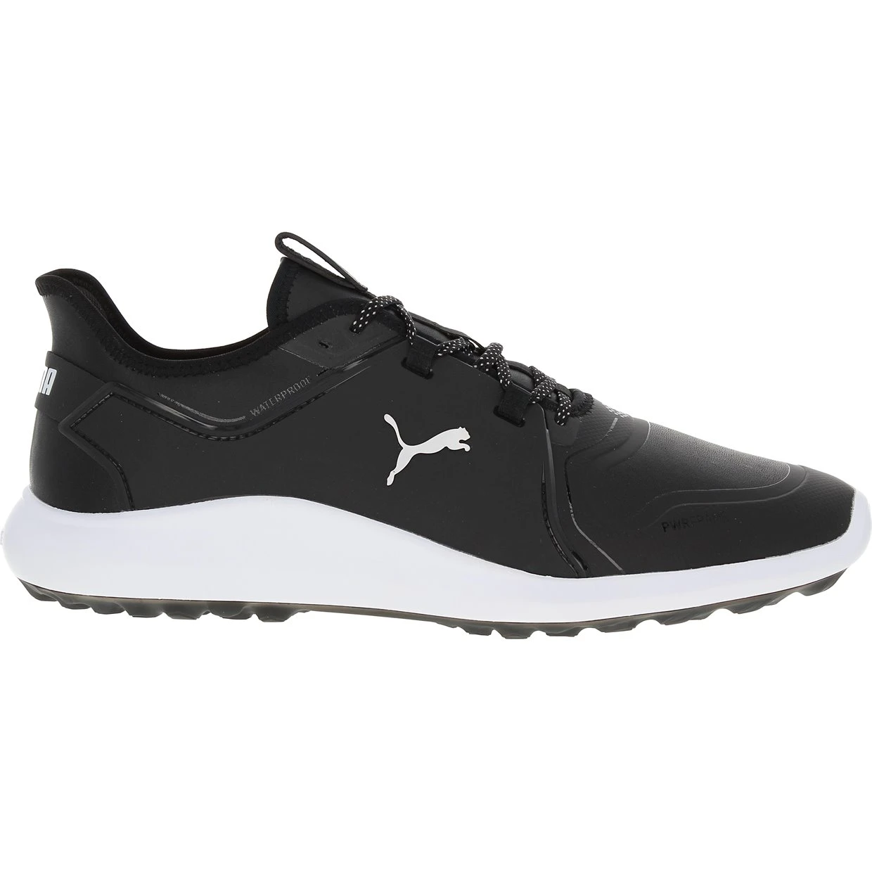 Puma’s Ignite Fasten8 Pro spikeless golf shoe offers step in comfort, support, stability, and excellent gripping power. The shoe features a waterproof upper that is constructed with a Fasten8 PWRStrap Fit System, featuring webbing straps integrated with the lacing system that provide a secure fit. The upper is also constructed with a PWRFrame and PWRCage, offering support and stability throughout your swing. The Ignite Foam midsole provides energy return, responsive comfort and stable cushioning. In addition, the midsole is wrapped with SoleShield, a micro thin TPU film that adds durability and makes cleaning off dirt and debris a breeze. The outsole is strategically designed with directional lugs in proper zones for increased traction that offers more gripping power.