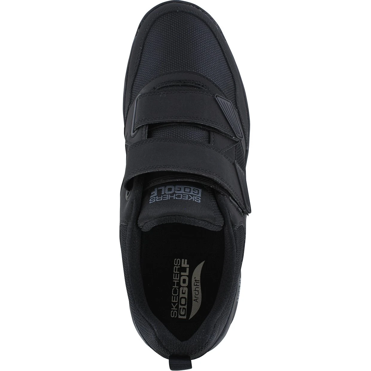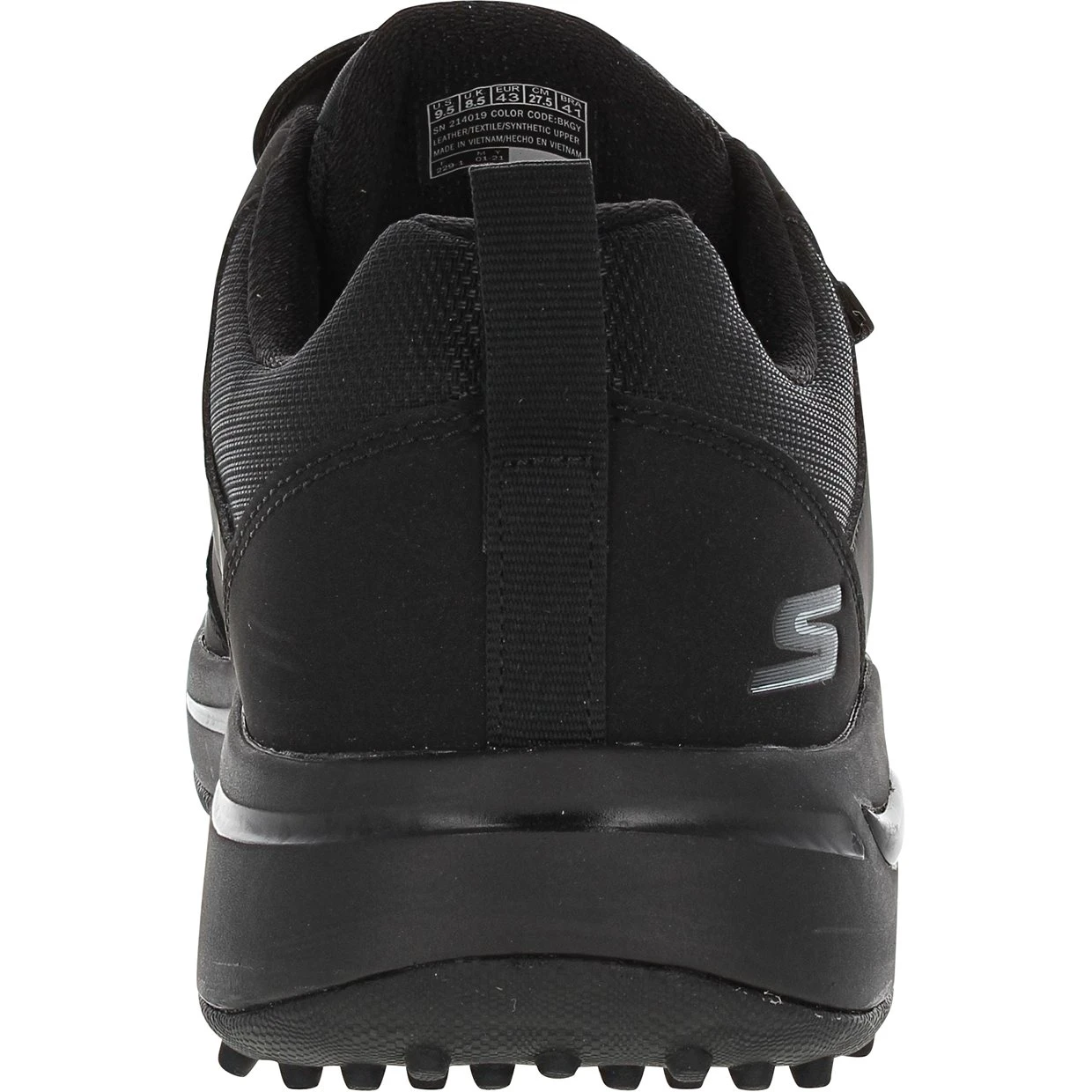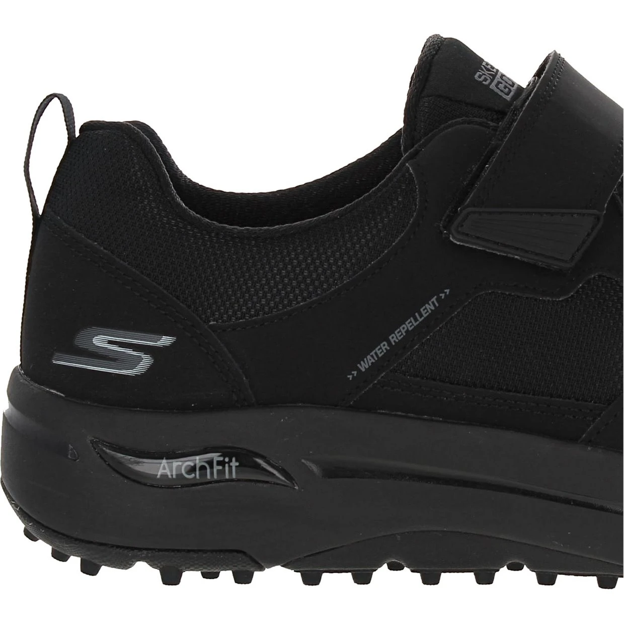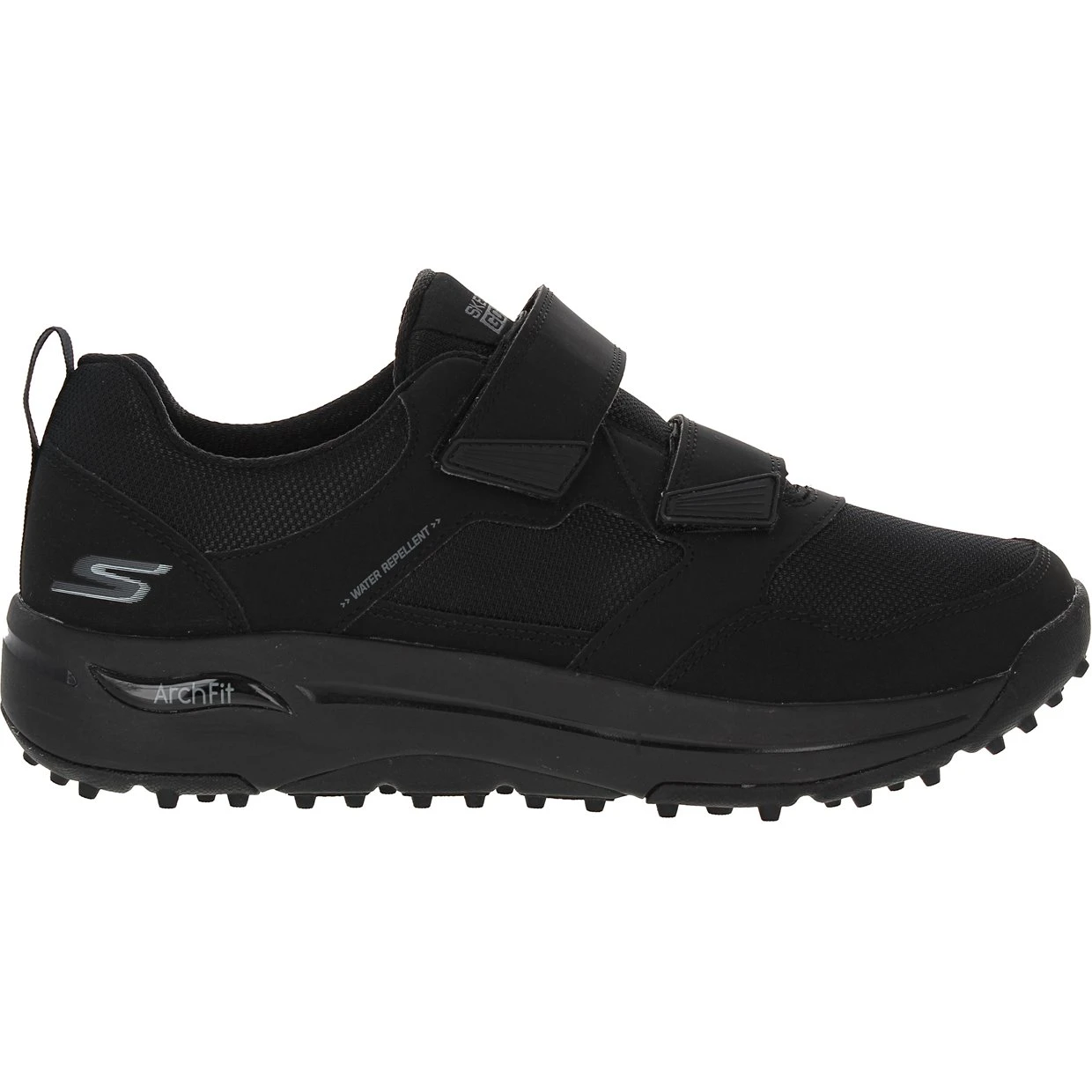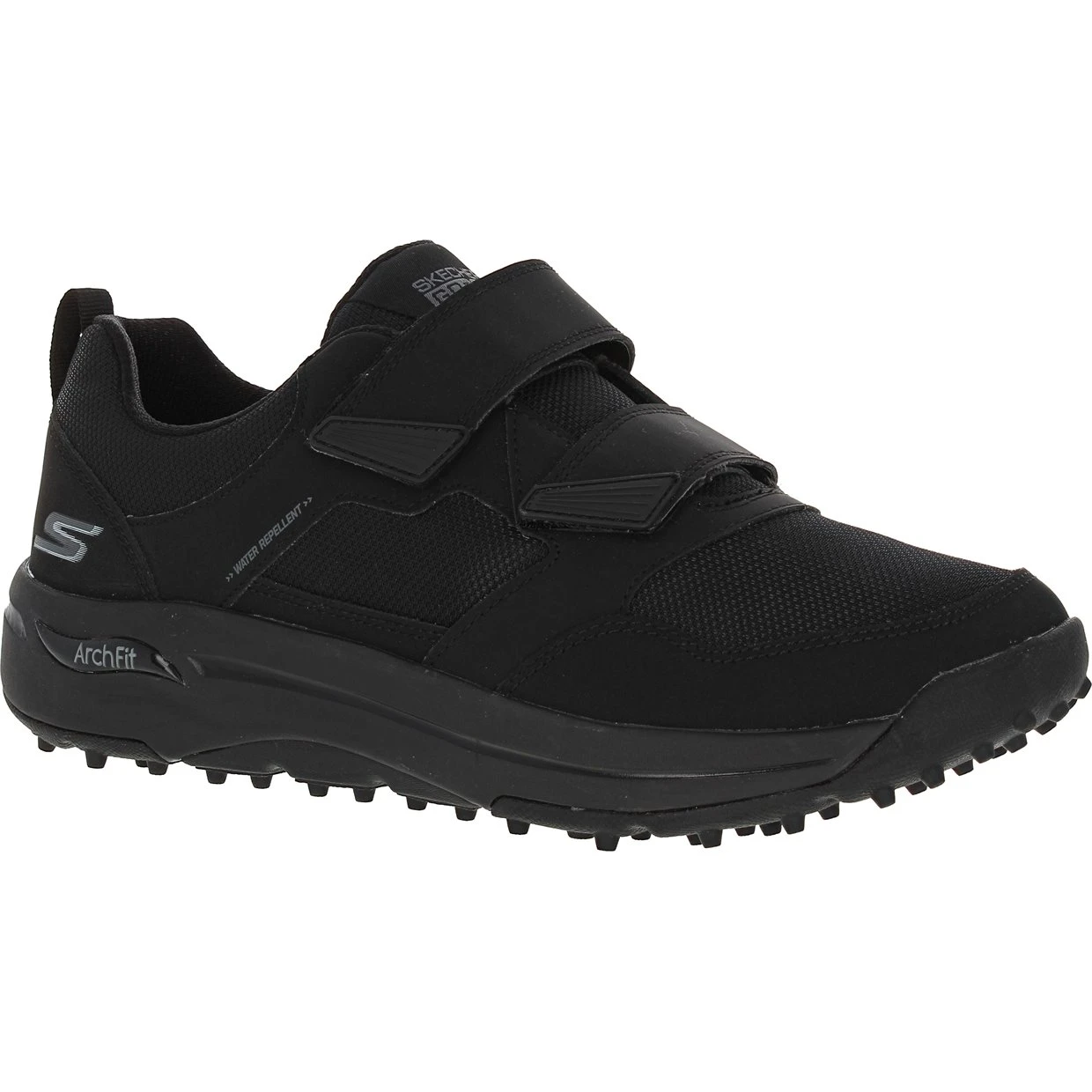 The Skechers Go Golf Arch Fit Front Nine spikeless golf shoe is constructed with water repellent synthetic textile leather, offering durability and dry comfort in light rain. It features an Arch Fit insole that provides podiatrist certified arch support. The shoe also features a lightweight, responsive Ultra Go cushioning midsole and a Goodyear rubber outsole for durability, stability, and enhanced grip.