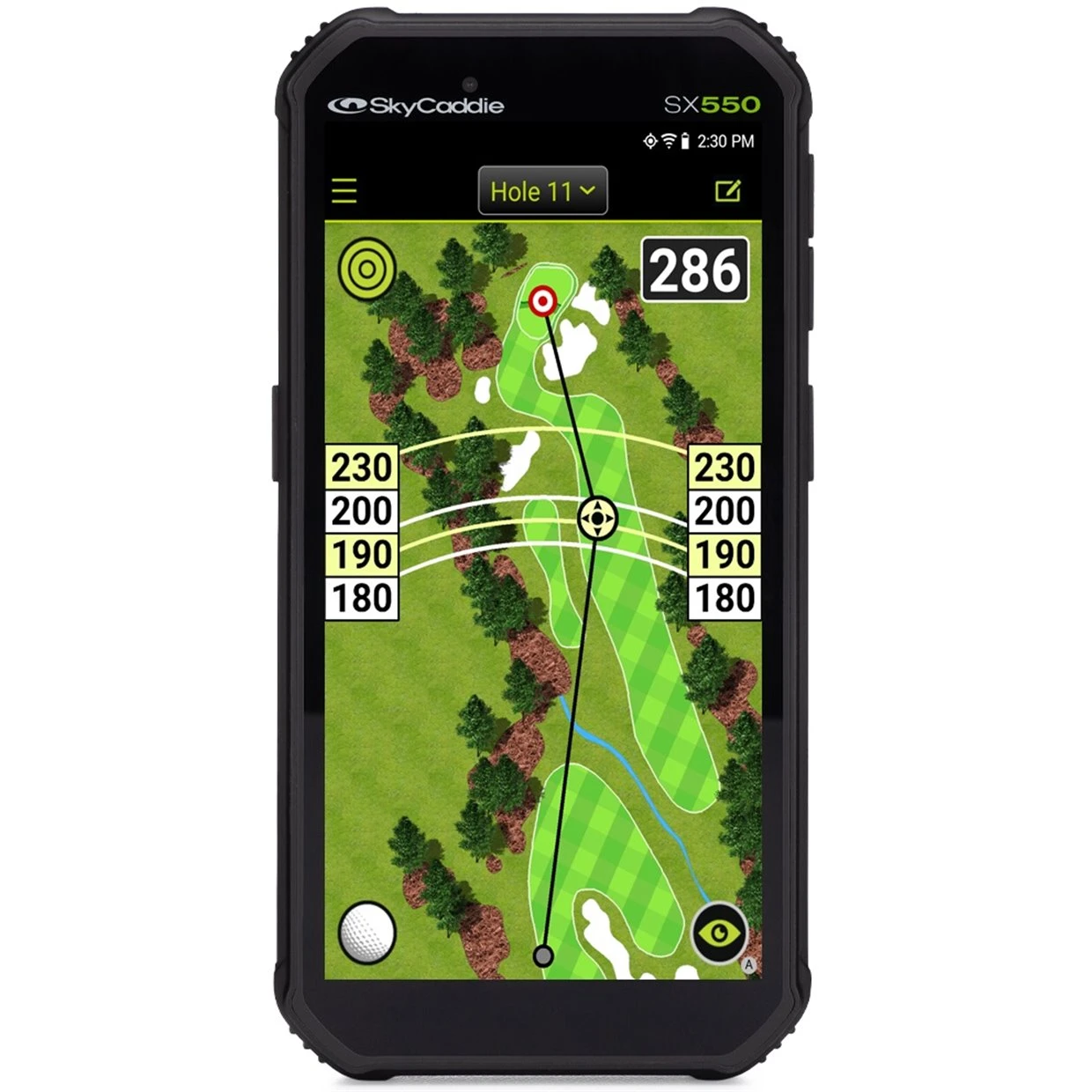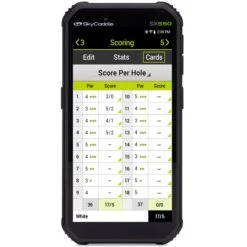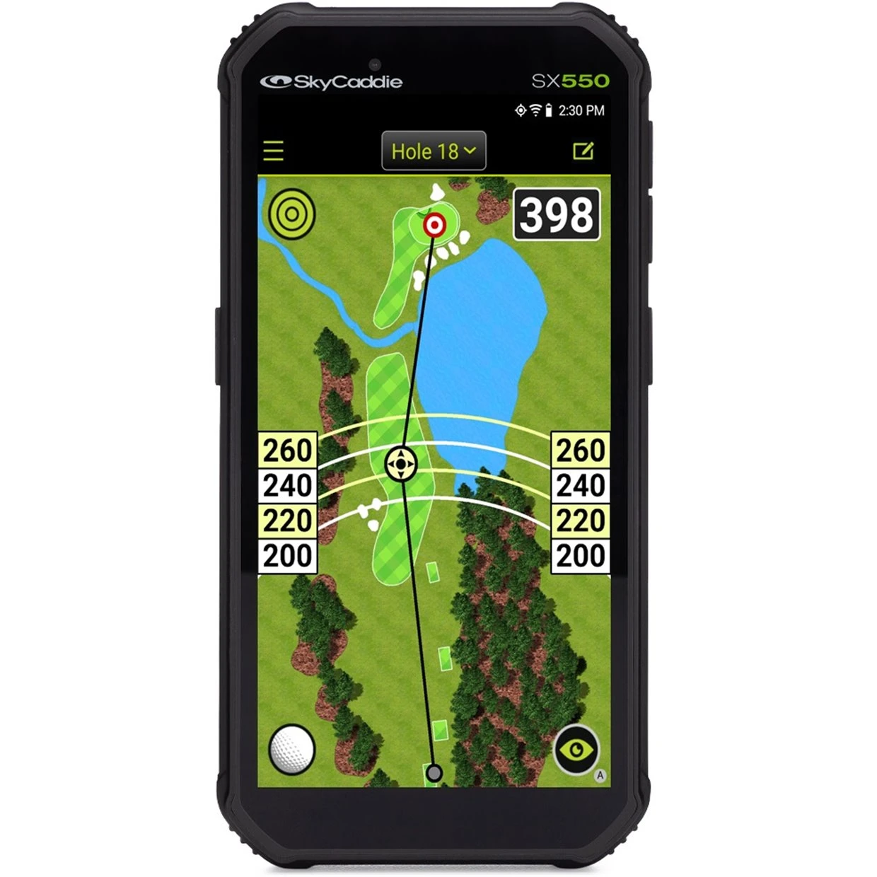 Enjoy your game more and play better with SkyCaddie’s SX550. It is a full-featured gps/rangefinder with super responsive vivid display on a large 5.5” LCD HD touch screen. It helps you play faster and make better shot decisions. It also delivers distances up to 40 geo-referenced targets per hole, including critical distances to all hazards, carries and layups. The slim body is lightweight and water resistant. The lithium polymer battery is rechargeable and provides up to 14 hours of use. SX550 is powered by an ultra-fast multi-core processor for quick response. It offers over 35,000 preloaded maps with full color HD course graphics. Features include Dynamic Rangevue (multiple yardage arcs overlay fairway landing areas and greens to allow you to select quickly the best club for every shot), Pinpoint Technology (get distances to the pin), Shot tracking (track each shot, which club used, how far you hit, and where you hit from), Digital scoring and more.