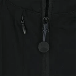 - Stand up ¼ zip through collar, hidden chest pocket, elastic hem and cuffs